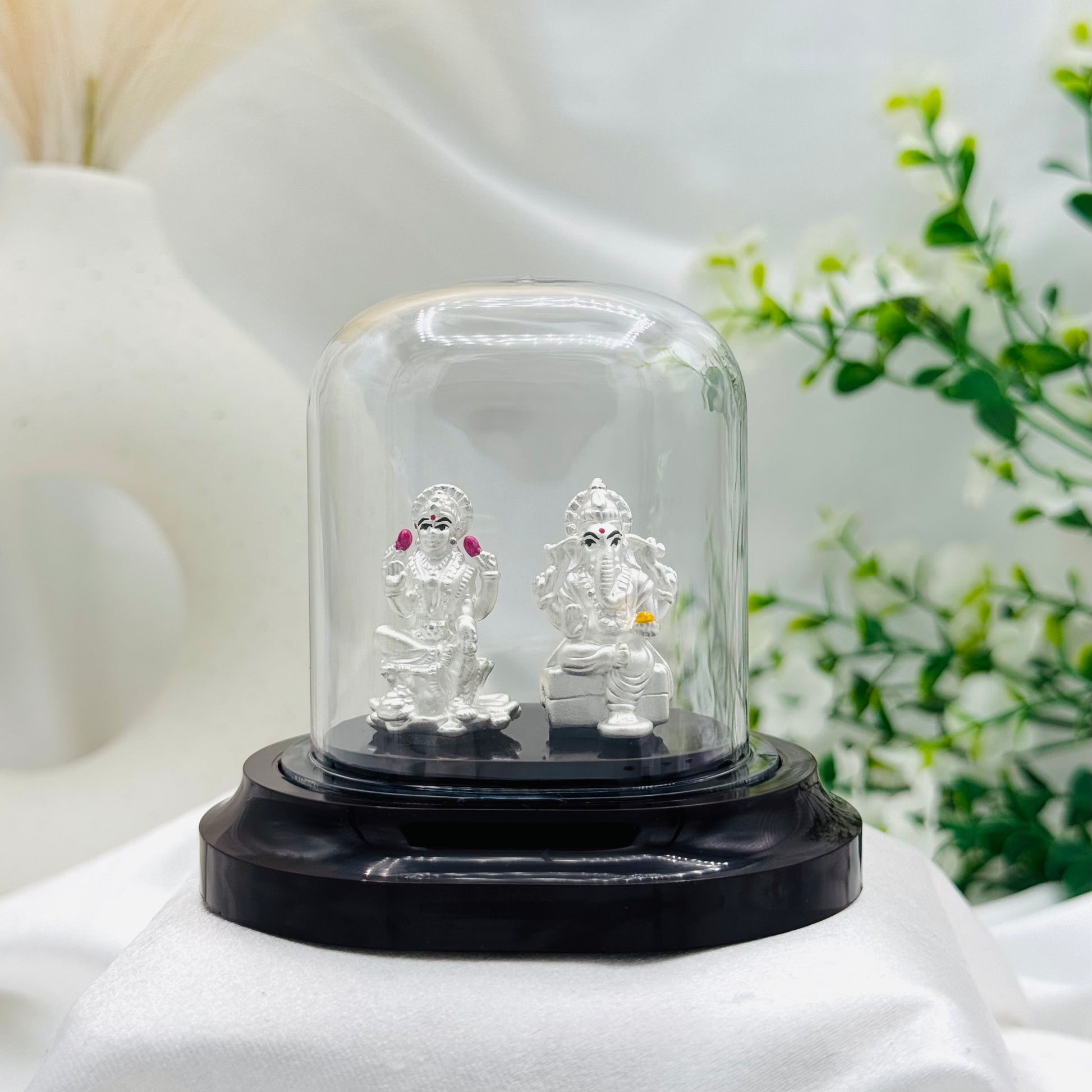 This Laxmi Ganesh Ji idol, exquisitely crafted from 999 pure silver, symbolizes prosperity and success. Its detailed craftsmanship and elegant finish make it a perfect centerpiece for your sacred space or refined décor, blending spiritual significance with timeless sophistication.