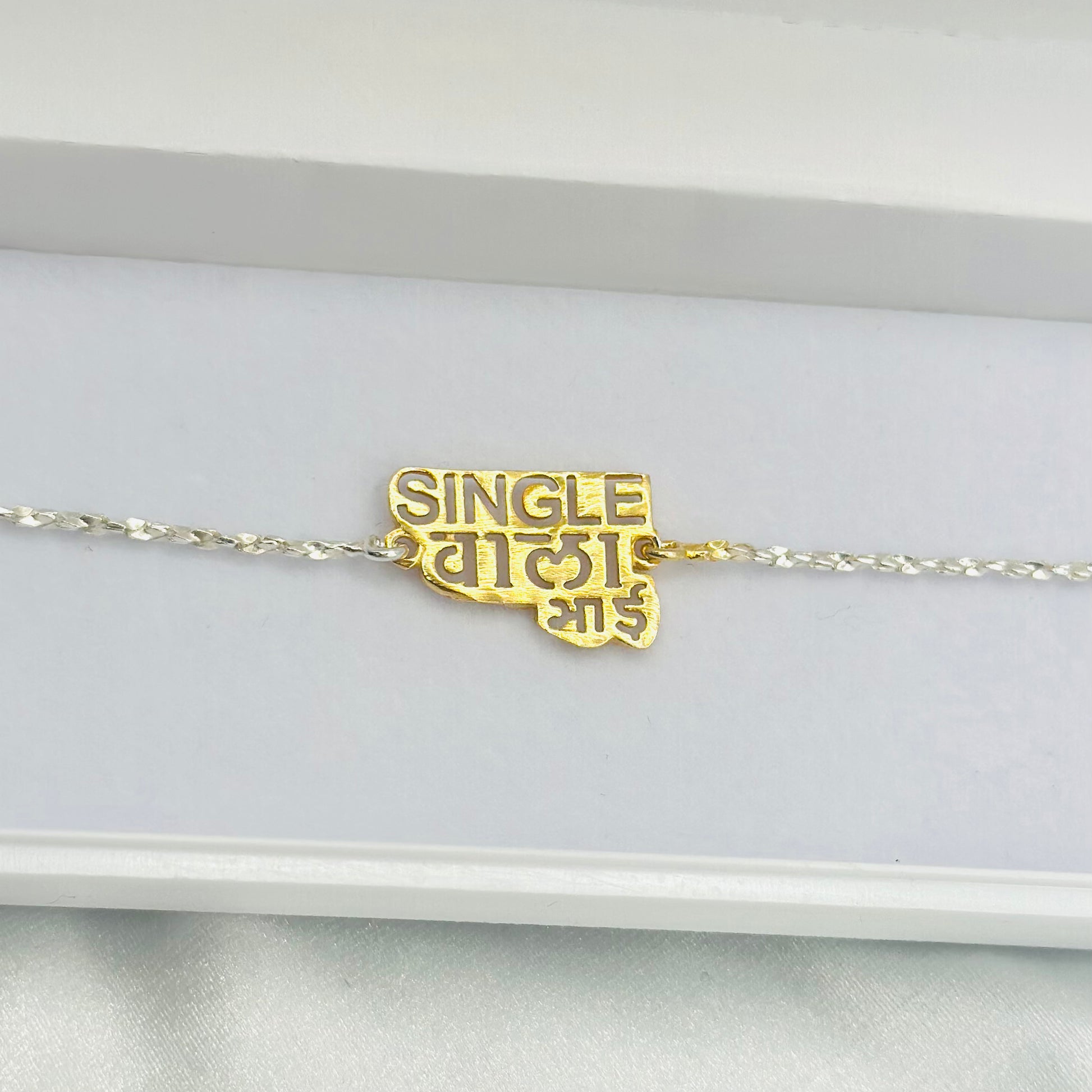 Make Raksha Bandhan extra fun with the Single Wala Bhai Silver Rakhi MRI04! Crafted from shiny 925 sterling silver with a golden polish, this adjustable rakhi is comfy enough for everyday wear. It’s the perfect playful way to celebrate your single brother’s special spot in your heart while adding a touch of sparkle to the festivities.
