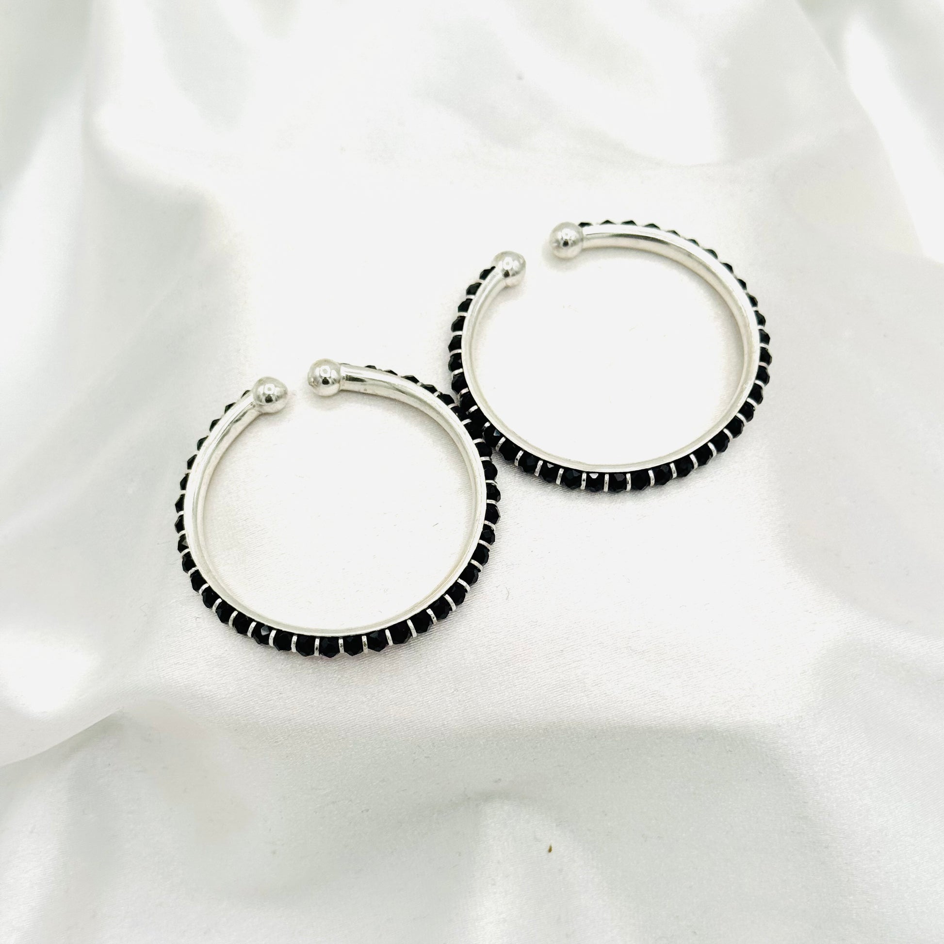 Black Beads Baby 925 Sterling Silver Open Bangle Pair BBS36