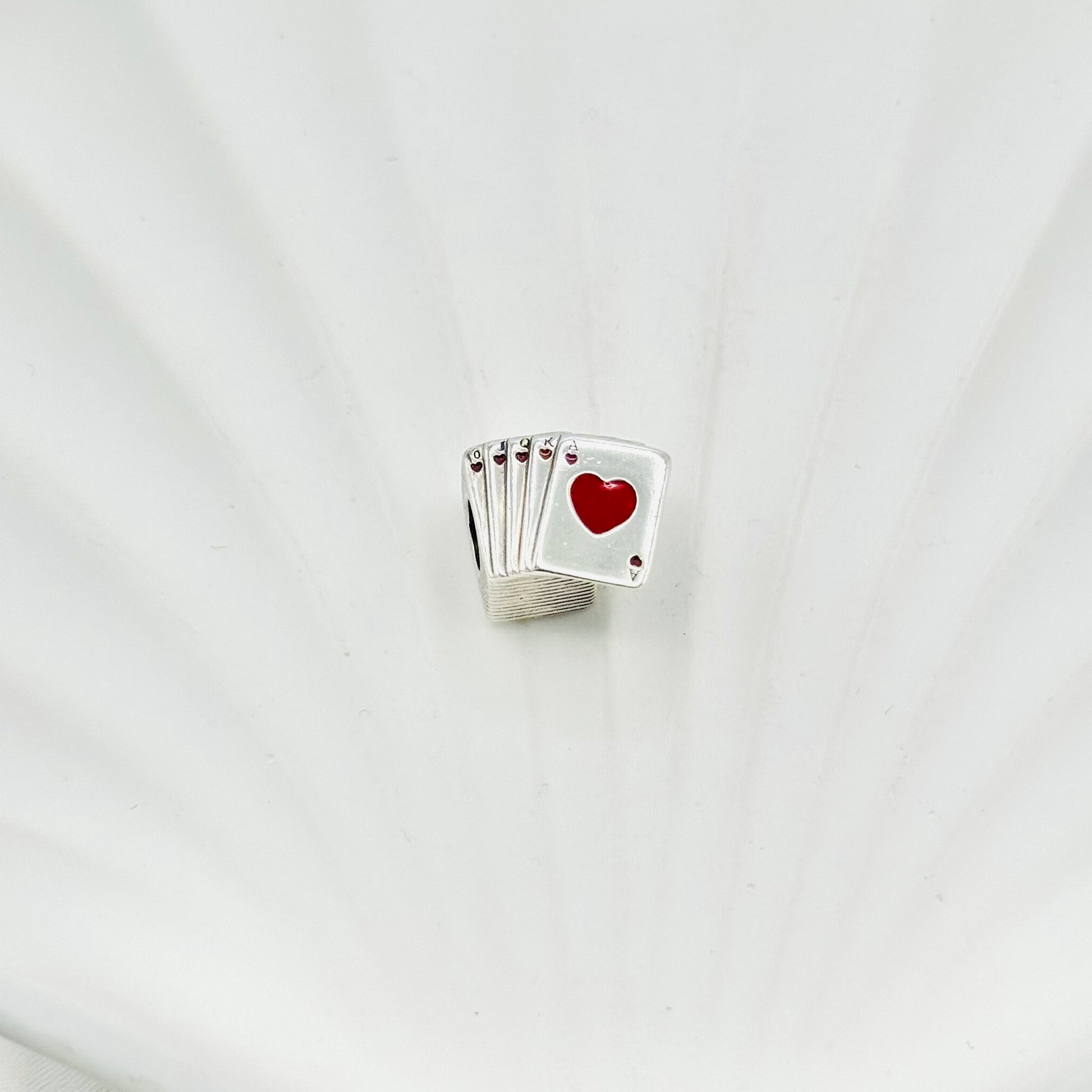 The Cards Pandora Charm, crafted from authentic 925 sterling silver, showcases a refined design inspired by playing cards. This sophisticated charm adds a subtle touch of elegance and playful charm to any Pandora bracelet, perfect for those who appreciate classic symbolism with a polished finish.