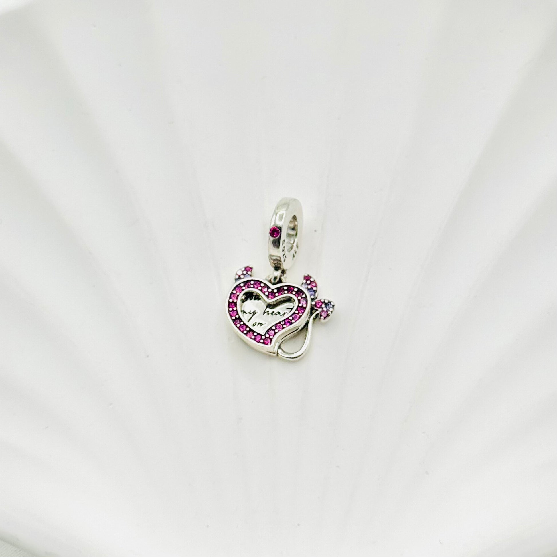 The Devils Heart Pandora Charm, crafted from genuine 925 sterling silver, presents a sophisticated blend of boldness and elegance. Featuring a heart design with subtle devilish accents, this charm adds a refined yet daring touch to any Pandora bracelet, perfect for those who appreciate a distinctive and stylish statement piece.