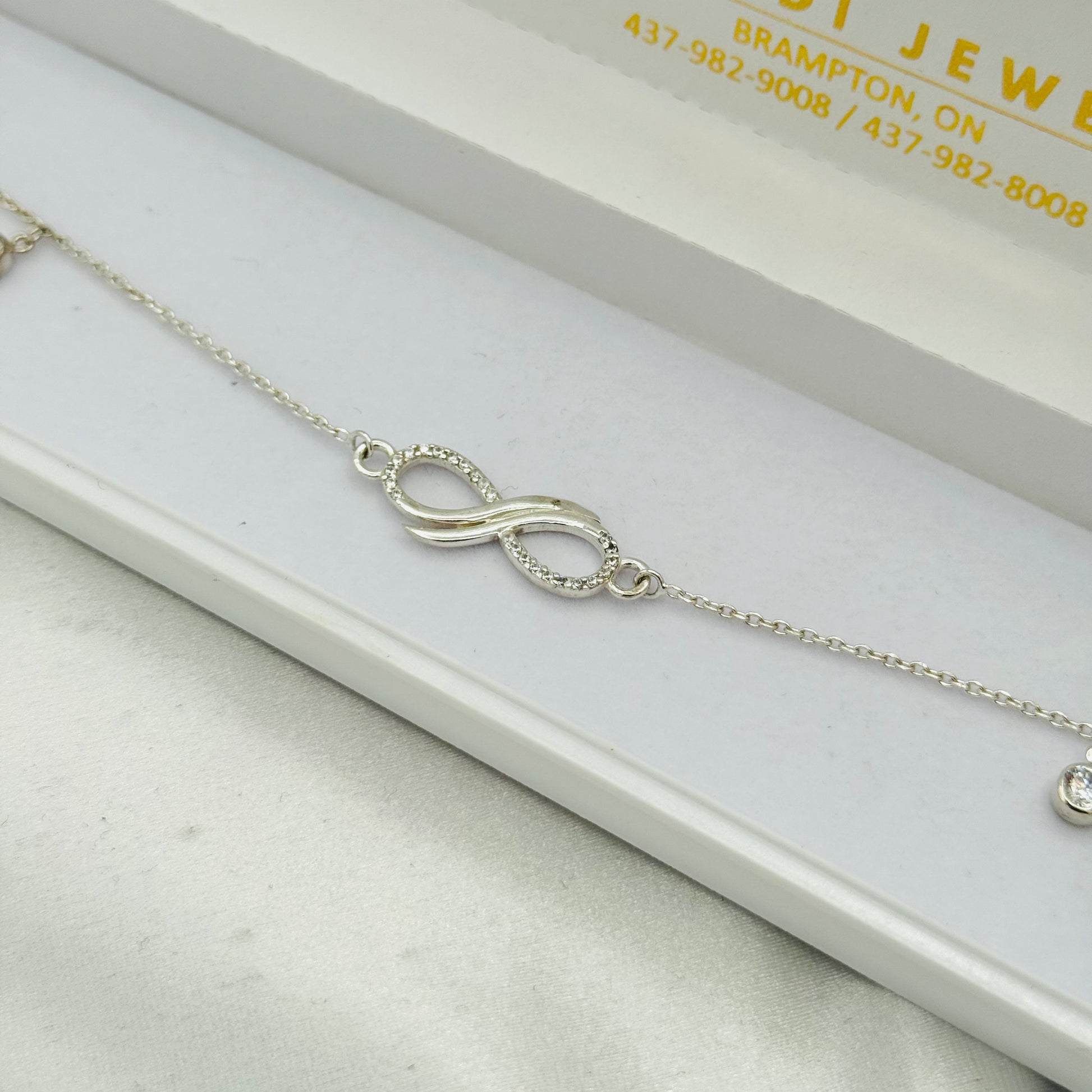 This sophisticated anklet, crafted from 925 Sterling Silver, features an elegant infinity symbol adorned with American Diamonds. Its timeless design symbolizes endless elegance, making it a perfect accessory to elevate both casual and formal styles with subtle brilliance and refined charm.