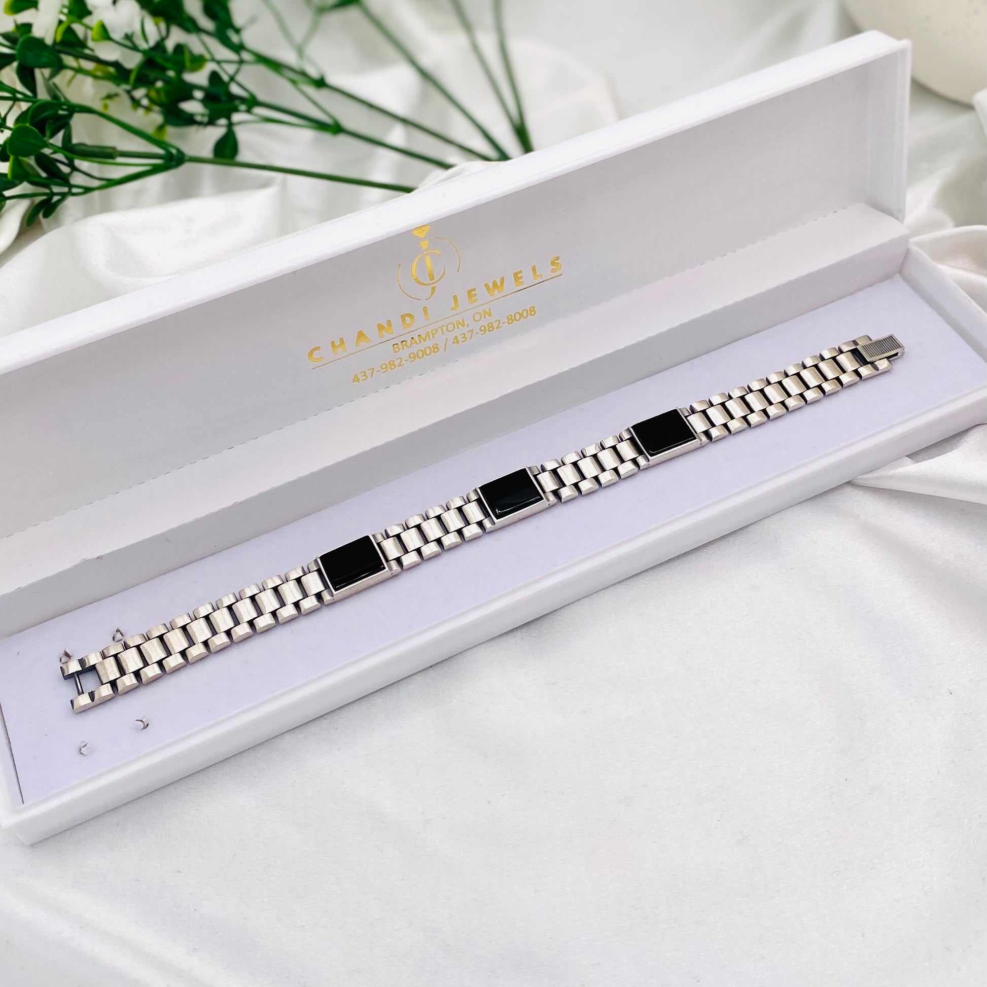 Mens Silver Bracelet with Onyx Stones MBO12