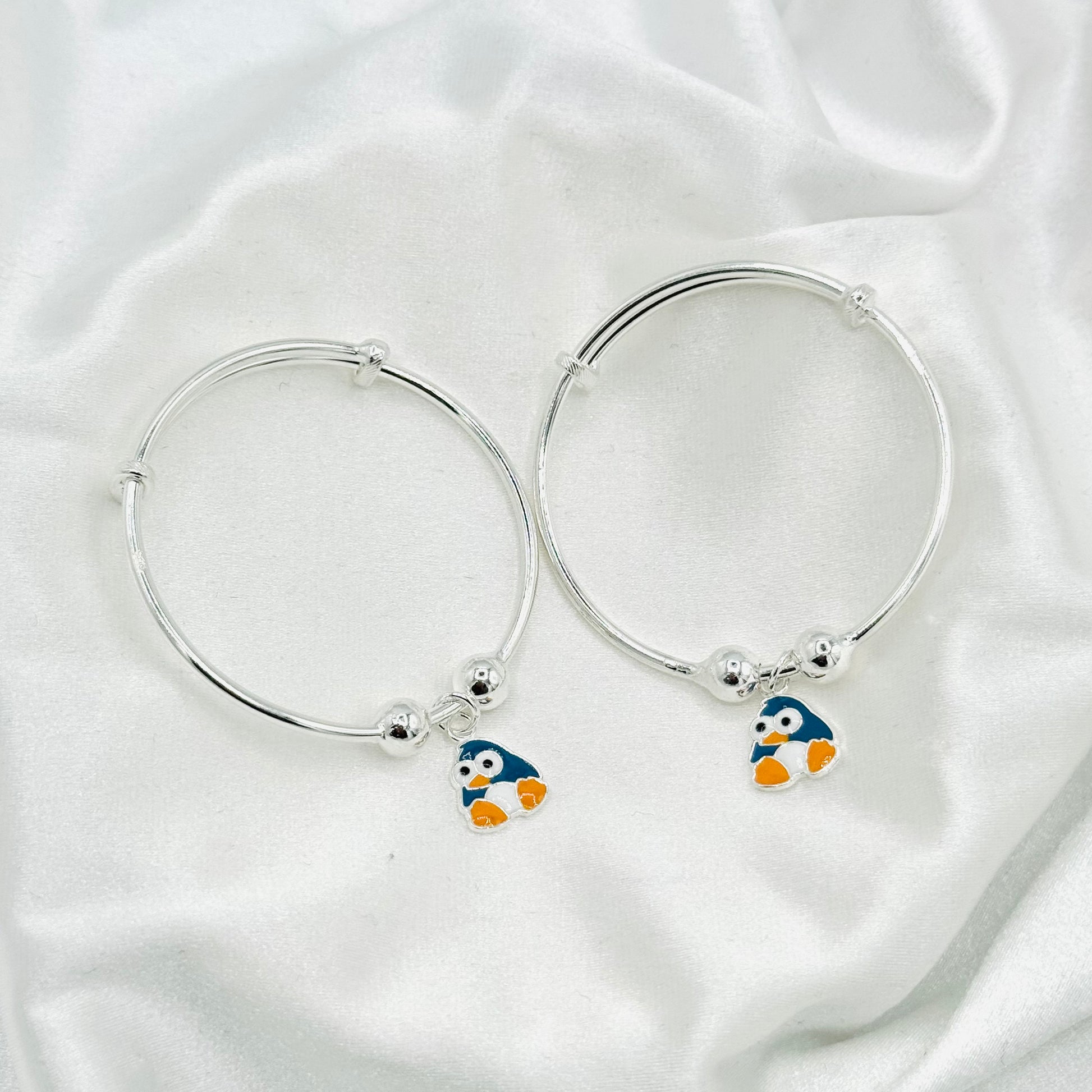 This adjustable kids bracelet, made from pure 925 sterling silver, is hypoallergenic and designed for everyday comfort. Featuring an adorable penguin charm, it brings a fun and charming detail to your child’s outfit while being gentle on sensitive skin. Perfectly suited for daily wear, this bangle combines durability and style, making it an ideal accessory for your little one’s active lifestyle.