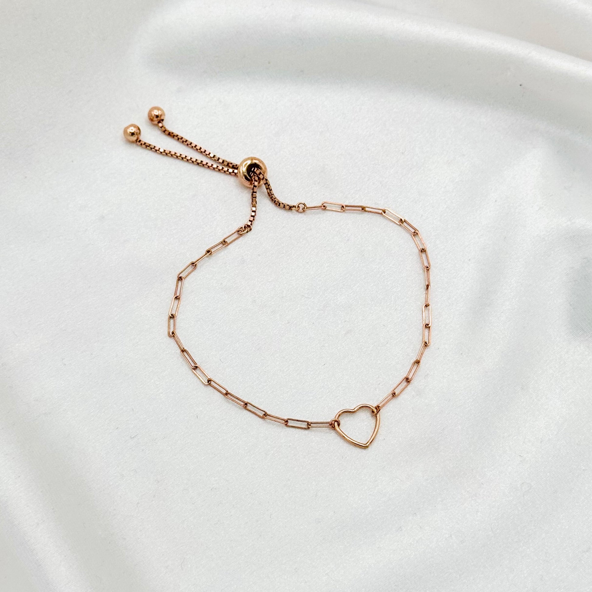 Rosegold Paperclip Adjustable Style Bracelet with Heartin Silver 925 WBI34