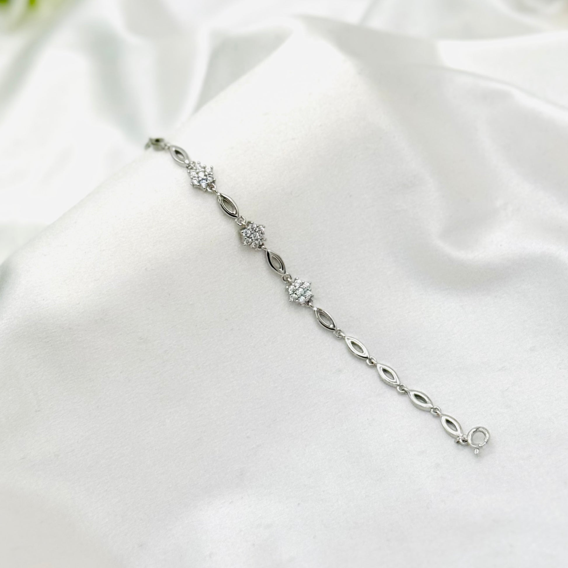This sterling silver chain bracelet for women combines timeless elegance with everyday practicality. Featuring delicate flower connectors, it adds a refined touch to any outfit while ensuring comfort and durability. Perfect for daily wear, this piece elevates your style with subtle sophistication.