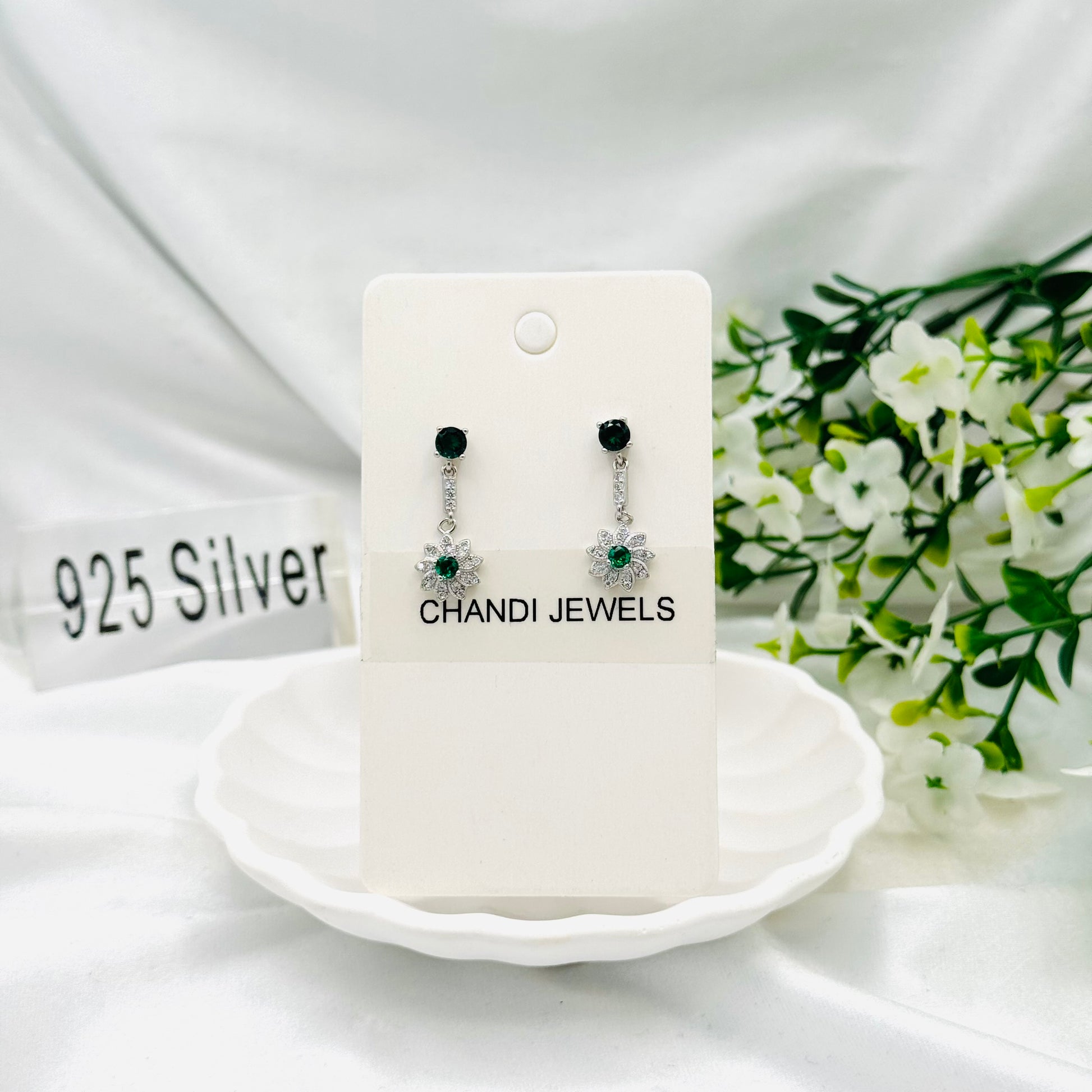 Dangler Flower Emerald Sterling Silver Earrings ERW47