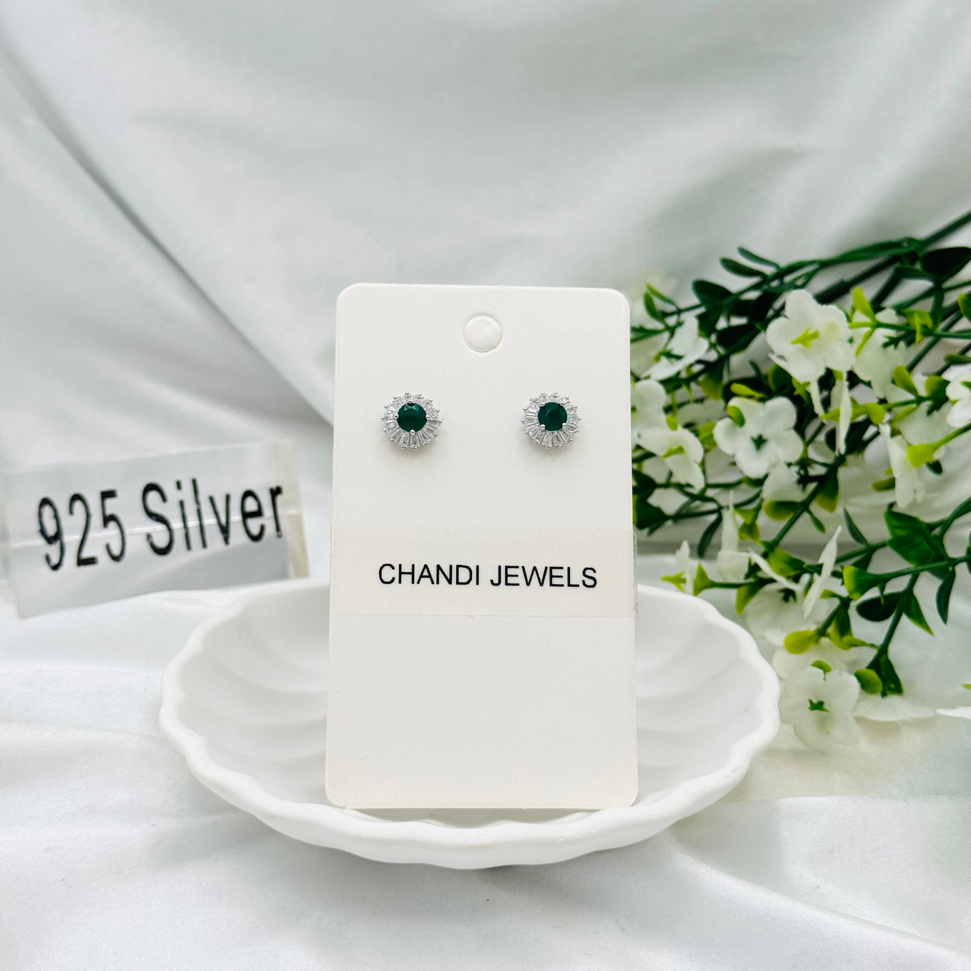 Round Emerald Stud Sterling Silver Earrings ERW41