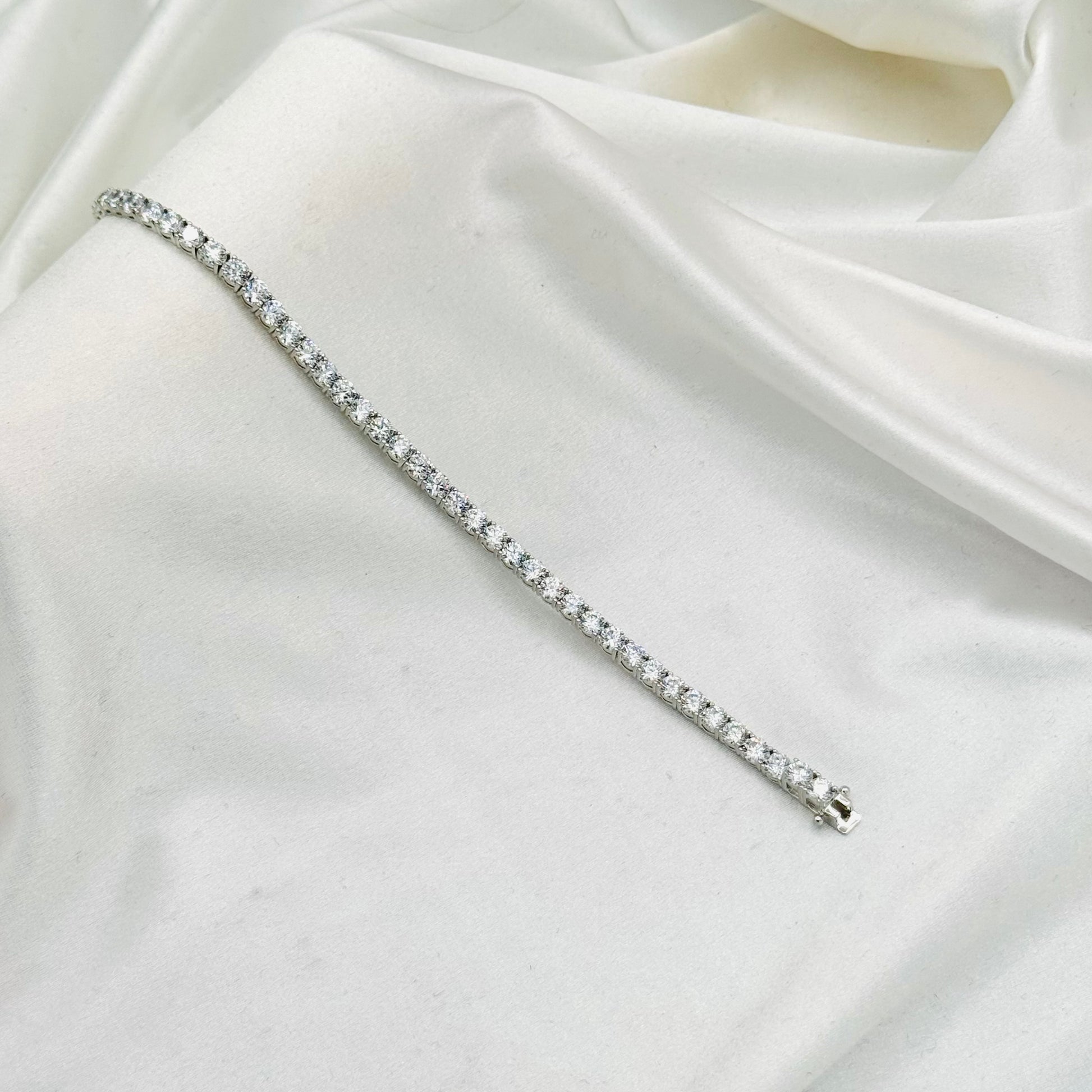 This Tennis Bracelet showcases exquisite moissanite-quality stones set in 925 sterling silver, blending classic round shapes with refined craftsmanship. Its smooth, circular design offers understated elegance and brilliant sparkle, making it a perfect accessory for any sophisticated occasion. Durable and timeless, this bracelet adds a graceful shimmer to your ensemble.