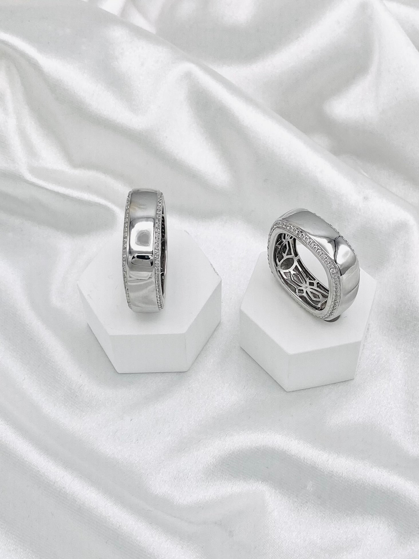 Unisex Bold Square Geometric double Row American Diamond Ring in Sterling Silver UR14