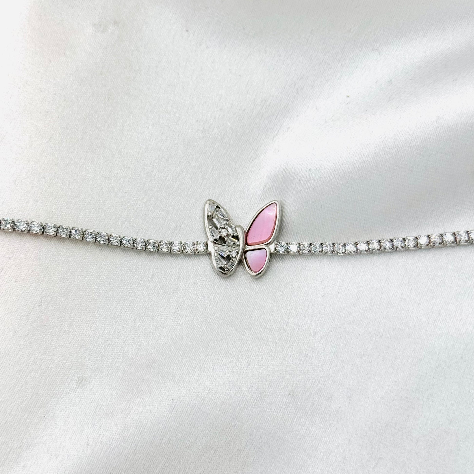 WBT38 Women Tennis Bracelet With Pink Butterfly & Moissanites In 925 Sterling Silver